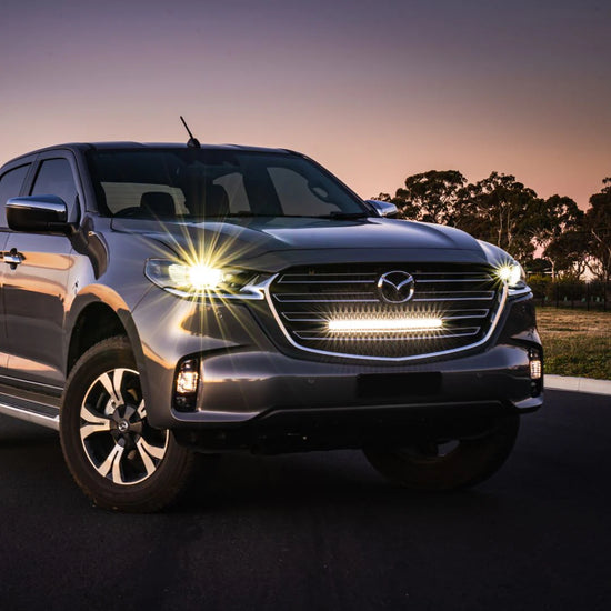 TrailBait Mazda BT-50 Behind-Grille Light Bar — the cleanest way to enhance your night-driving visibility without installing a bull bar. This hidden lighting setup mounts neatly behind the grille for a stealth look while delivering exceptional performance.