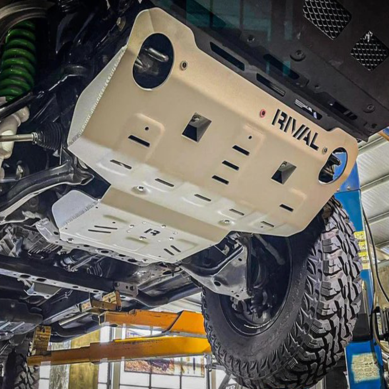 The high-quality laser cut RIVAL underbody armour is made from deep stamped 6mm thick aluminium alloy. This durable underbody armor offers both a lightweight and high strength solution for underbody protection. Combined with a no drill installation, it’s an easy choice to protect underbody of your vehicle from rocks, logs and scrapes. Being an extremely corrosion resistant material aluminium will not rust even if the surface coating becomes gouged or scratched.