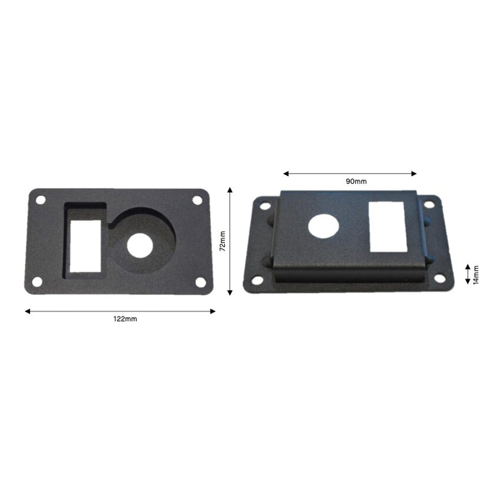 - Recess (or cut size): 90mm (w) x 60mm (h) x 14mm (d)