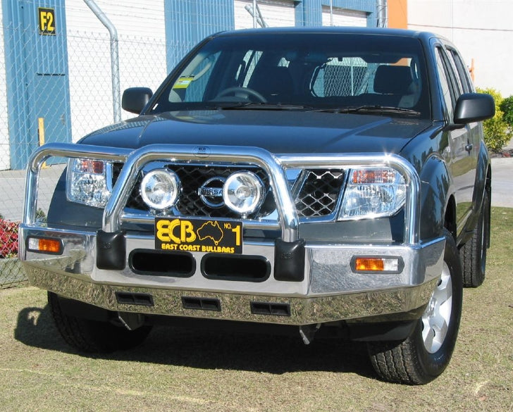 For the ultimate in frontal protection you will find it hard to go past the strength. quality and style of the ECB Big Tube Bullbar for your Nissan Pathfinder R51. The single piece channel is fully welded and manufactured from high tensile. structural grade alloys to provide maximum strength. Our Big Tube Bar® incorporates a full width. braced lower protection skirt and the specifically designed steel mounting system ensures a neat and sturdy fit. ECB LED light combinations. air directional cooling vents and an aerial bracket are all standard features. Your ECB Big Tube Bar® is available in a mirror finished polished alloy or choose from one of our low maintenance powder coat finishes. Our ECB Big Tube Bar® is proudly manufactured in Australia and we offer a lifetime warranty.