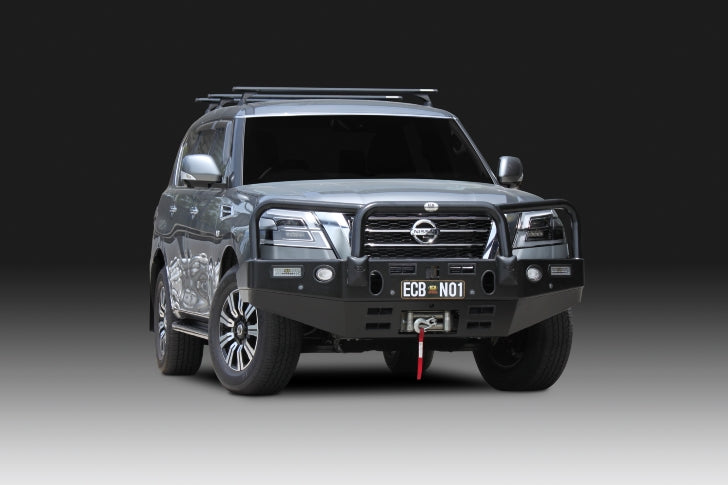 For the ultimate in frontal protection you will find it hard to go past the strength. quality and style of the ECB Winch Compatible Big Tube Bar® for your . The single piece channel is fully welded and manufactured from high tensile. structural grade alloys to provide maximum strength. This no compromise design is engineered to accommodate up to a 10.500lb low mount winch that is attached to the chassis as part of the specifically designed steel mounting system ensuring a neat and sturdy fit. Our Winch Compatible Big Tube Bar® incorporates a full width. braced lower protection skirt. ECB LED light combinations. bumper lights. air directional cooling vents and an aerial bracket are all standard features.