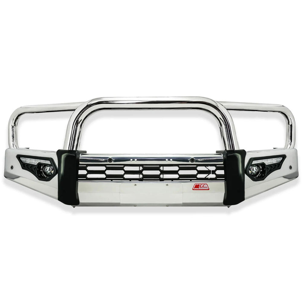 strength performance and fully funtional options! MCC Aluminium Triple Loops Phoenix bar is engineered to offer a next level bull bar in a light-weight class which optimized fuel economy and strength. The Light Strips and Diagonal Steel Pattern develop a modern version of bull bar style. Fog Light is also included in this sensational bull bar to support driving in low visibility conditions