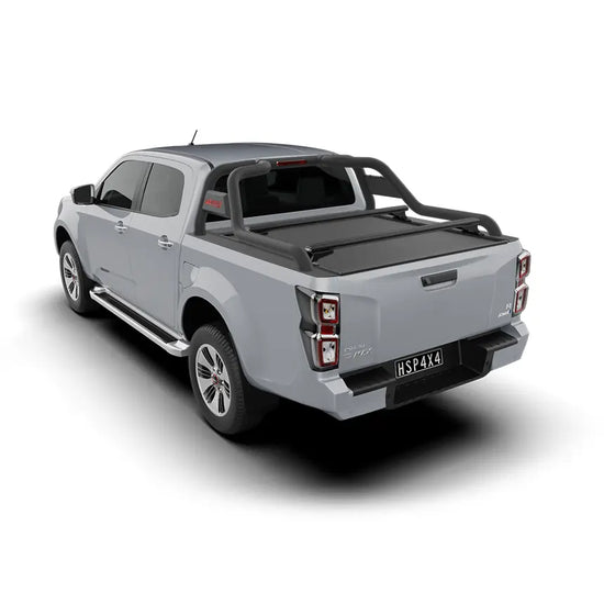 The HSP Load Bar 1410-LB2-RC is a premium 2-bar load system designed to integrate seamlessly with the HSP Roll R Cover Series 3.5 on the Isuzu D-Max Gen 3 MY2021+ Dual Cab fitted with either an extended sports bar or Armour Bar.