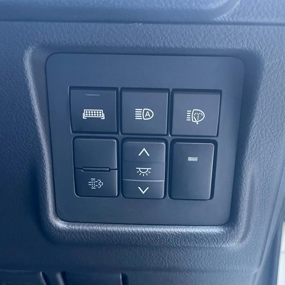 Upgrade your factory switch panel with the STEDI Toyota Square Push Switch, designed for a perfect OEM-style fit across a wide range of Toyota models and STEDI switch fascias. Featuring precision laser-etched icons, factory-matched backlighting, and reliable 12V performance, this switch provides a clean, professional solution for operating your auxiliary lighting and accessories.