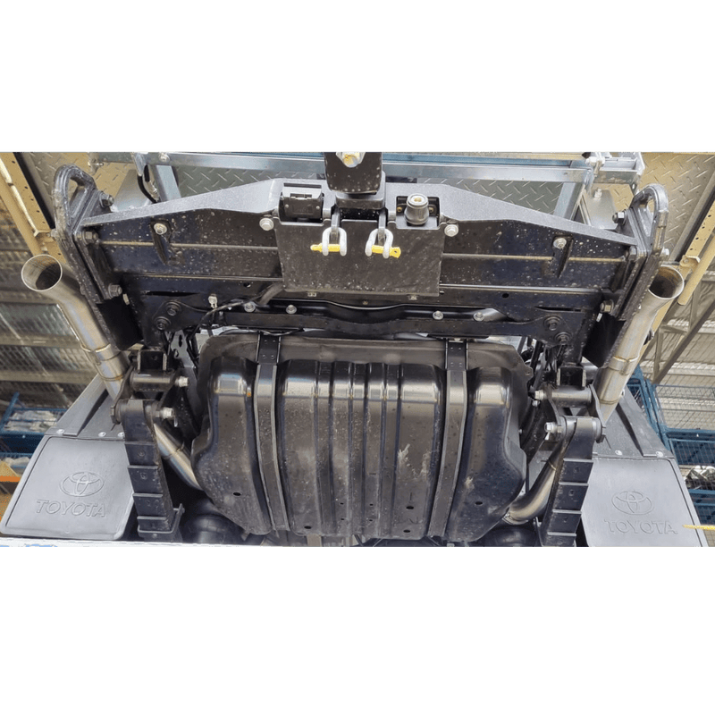 This twin exit exhaust suits the Toyota 79 Series 4.5L Single Cab models from August 2016 to Current (2024). It is compatible with aftermarket tanks including LRA, Long Ranger, Frontier, and Brown Davis.