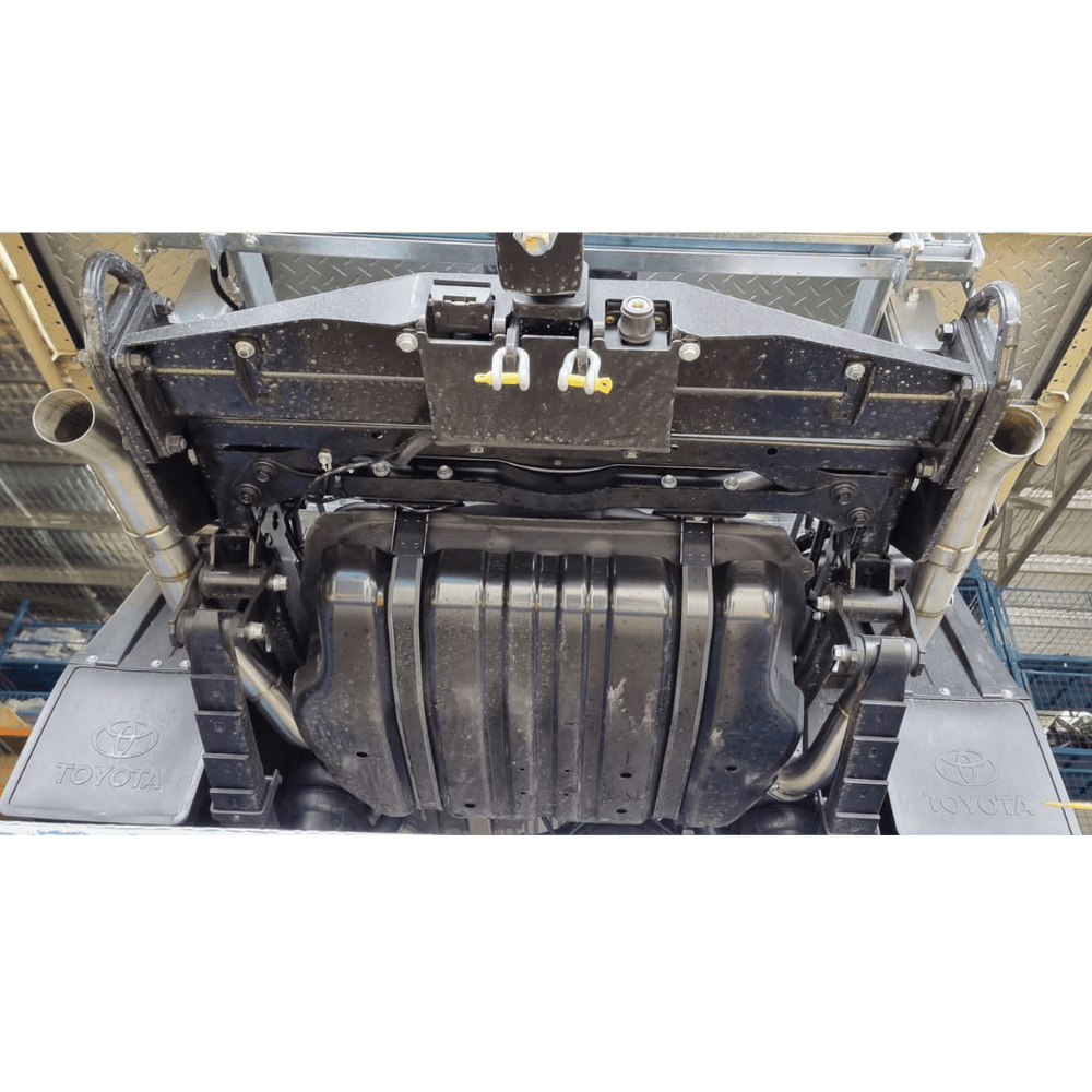 This exhaust suits the following fuel tanks: LRA, Long Ranger, Frontier Long Range, and Brown Davis. Contact the MyTuff4x4 team for support with custom setups and aftermarket accessories.