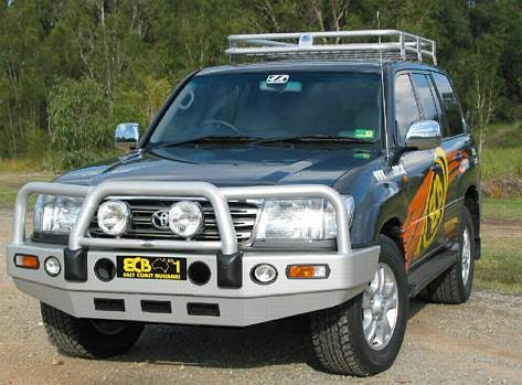 For the ultimate in frontal protection you will find it hard to go past the strength. quality and style of the ECB Big Tube Bullbar Suitable for Toyota Landcruiser 100 Series IFS. The single piece channel is fully welded and manufactured from high tensile. structural grade alloys to provide maximum strength. Our Big Tube Bar® incorporates a full width. braced lower protection skirt and the specifically designed steel mounting system ensures a neat and sturdy fit. ECB LED light combinations. bumper lights. air directional cooling vents and an aerial bracket are all standard features. Your ECB Big Tube Bar® is available in a mirror finished polished alloy or choose from one of our low maintenance powder coat finishes. Our ECB Big Tube Bar® is proudly manufactured in Australia and we offer a lifetime warranty.
