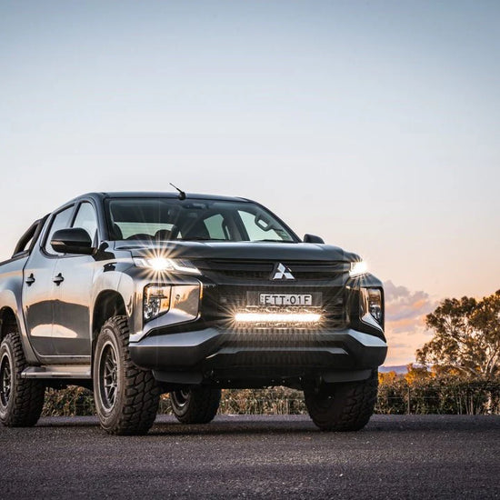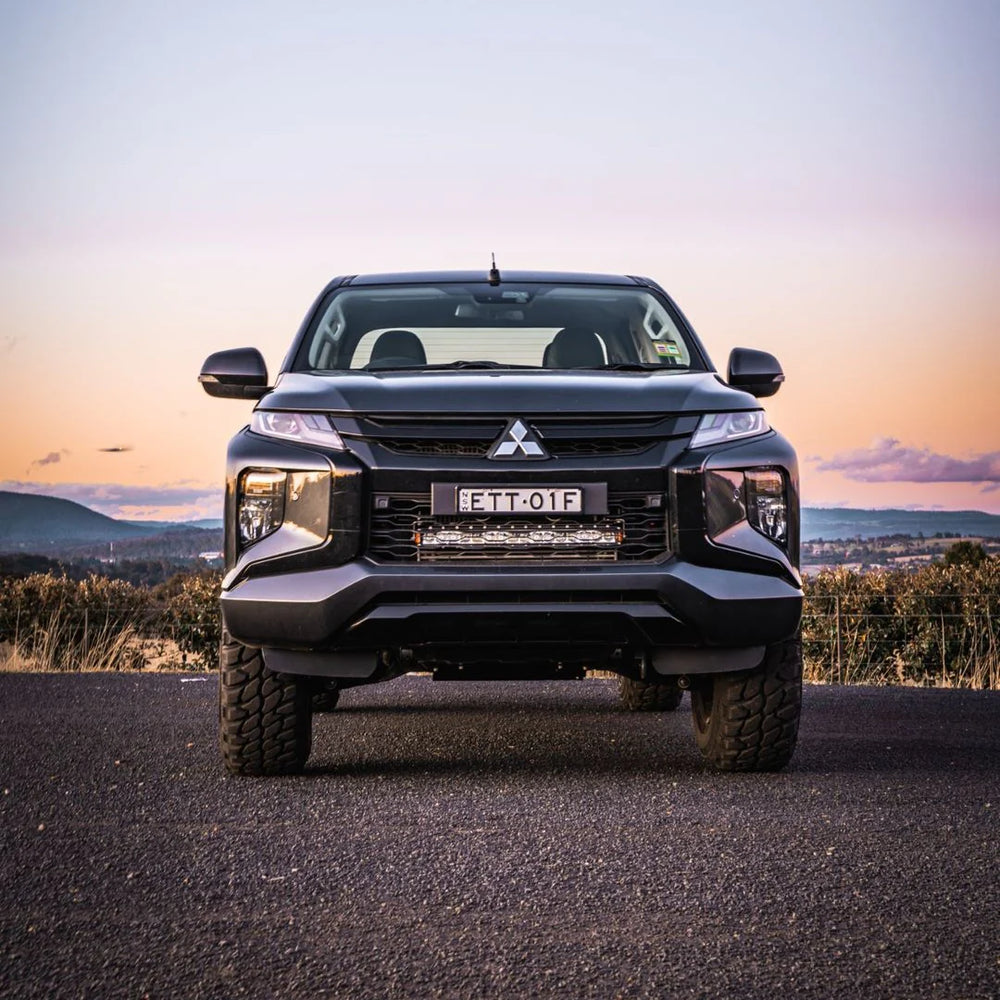 TrailBait MR Triton Behind-Grille Light Bar — the ultimate lighting upgrade for your Triton without the need for a bull bar. This kit conceals a powerful LED light bar neatly behind the grille, providing exceptional illumination while maintaining your vehicle’s clean, factory look.